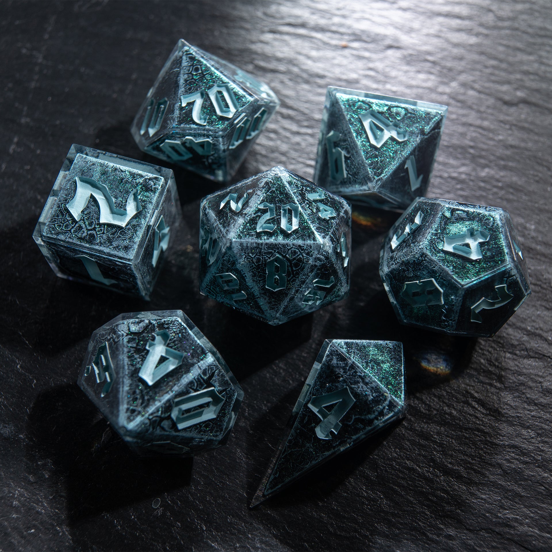 This dice set looks as if it wasn’t taken from a box but from the lair of an ancient creature.