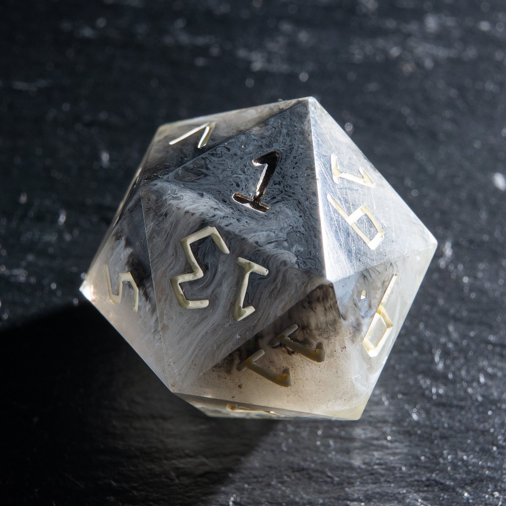 These dice have been cast in an pressurised pot to ensure they are balanced and bubble free. They are handmade from start to finish - casting, sanding, polishing and painting. Each set of dice turns out unique and has its own special character.